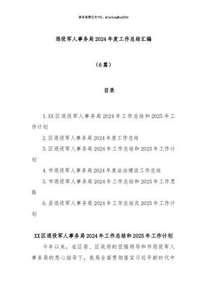 / 【七哥公文】2024年:(6篇)退役军人事务局2024年度工作总结汇编+更多免费公文+VX:QiGeGongWen2024