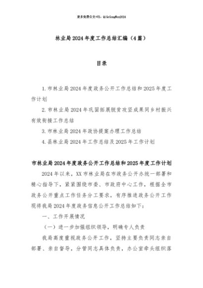 / 【七哥公文】2024年:(4篇)林业局2024年度工作总结汇编+更多免费公文+VX:QiGeGongWen2024