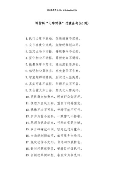 / 【七哥公文】2024年:(45例)写材料“七字对偶”过渡金句+更多免费公文+VX:QiGeGongWen2024