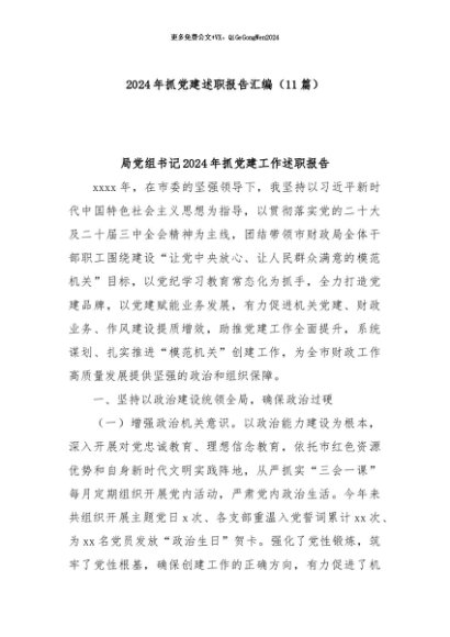 / 【七哥公文】2024年:(11篇)2024年抓党建述职报告汇编+更多免费公文+VX:QiGeGongWen2024