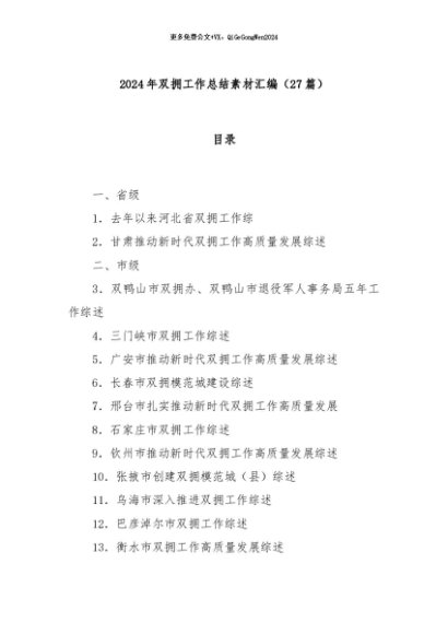 / 【七哥公文】2024年:(27篇)2024年双拥工作总结素材汇编+更多免费公文+VX:QiGeGongWen2024