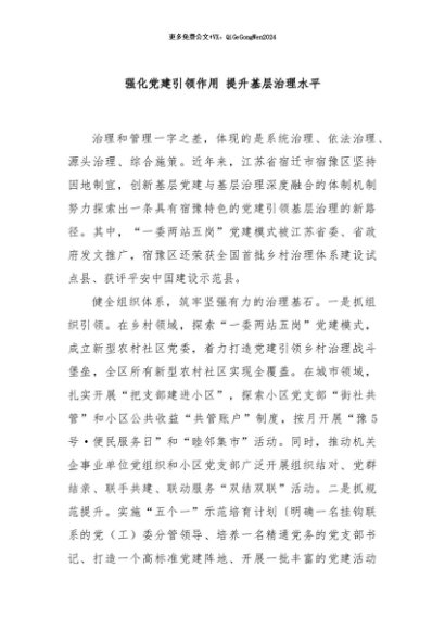 / 【七哥公文】2024年:强化党建引领作用 提升基层治理水平+更多免费公文+VX:QiGeGongWen2024