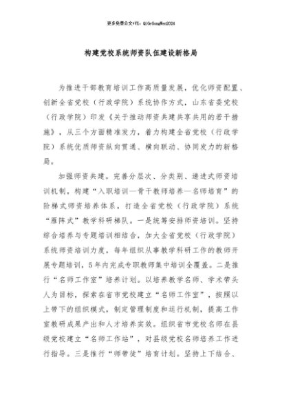 / 【七哥公文】2024年:构建党校系统师资队伍建设新格局+更多免费公文+VX:QiGeGongWen2024