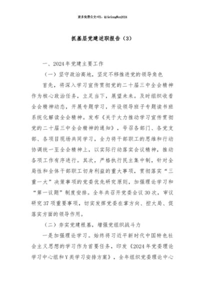/ 【七哥公文】2024年:抓基层党建述职报告(3)+更多免费公文+VX:QiGeGongWen2024