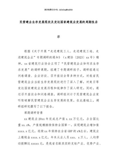 【七哥公文】2024年:民营建企生存发展现状及发达国家建筑业发展的周期性启示+更多免费公文+VX:QiGeGongWen2024