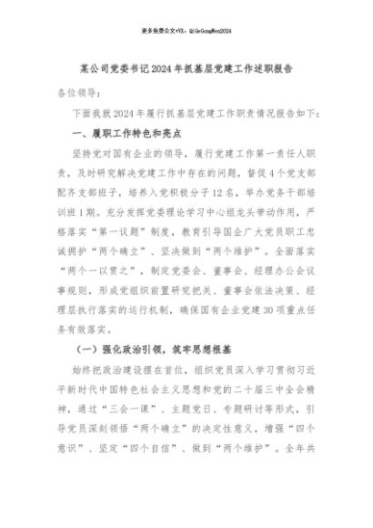 / 【七哥公文】2024年:某公司党委书记2024年抓基层党建工作述职报告+更多免费公文+VX:QiGeGongWen2024