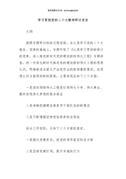 / 【七哥公文】2024年:学习贯彻党的二十大精神研讨发言+更多免费公文+VX:QiGeGongWen2024