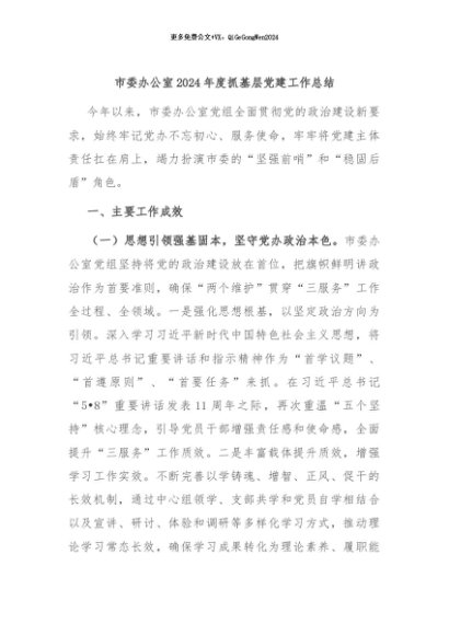 / 【七哥公文】2024年:市委办公室2024年度抓基层党建工作总结+更多免费公文+VX:QiGeGongWen2024