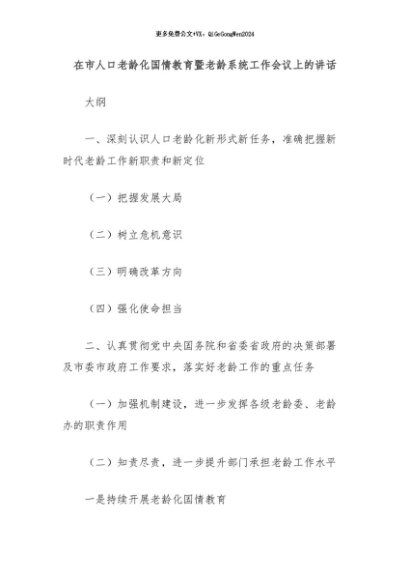 / 【七哥公文】2024年:在市人口老龄化国情教育暨老龄系统工作会议上的讲话+更多免费公文+VX:QiGeGongWen2024