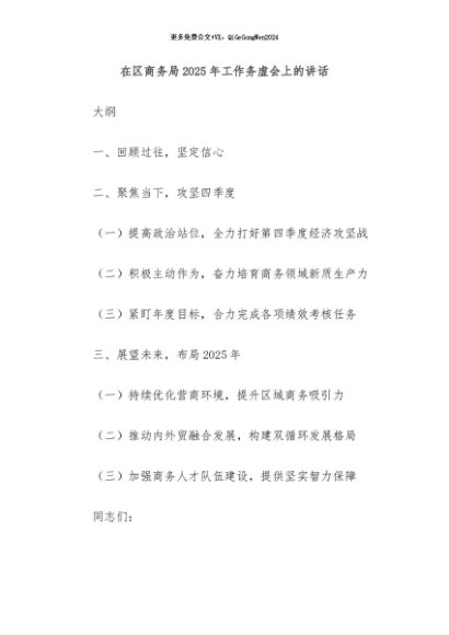 / 【七哥公文】2024年:在区商务局2025年工作务虚会上的讲话+更多免费公文+VX:QiGeGongWen2024