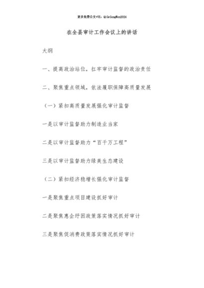 / 【七哥公文】2024年:在全县审计工作会议上的讲话+更多免费公文+VX:QiGeGongWen2024