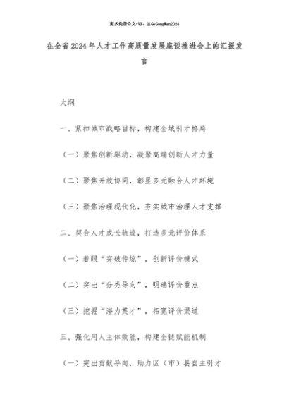 【七哥公文】2024年:在全省2024年人才工作高质量发展座谈推进会上的汇报发言+更多免费公文+VX:QiGeGongWen2024