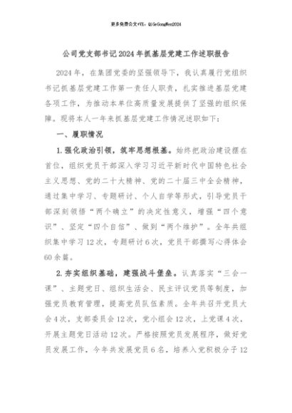 / 【七哥公文】2024年:公司党支部书记2024年抓基层党建工作述职报告+更多免费公文+VX:QiGeGongWen2024