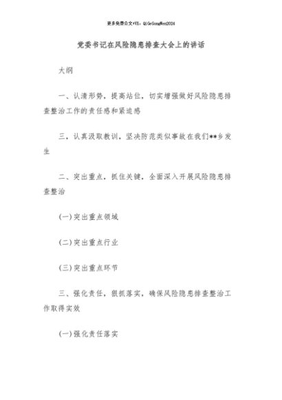 / 【七哥公文】2024年:党委书记在风险隐患排查大会上的讲话+更多免费公文+VX:QiGeGongWen2024