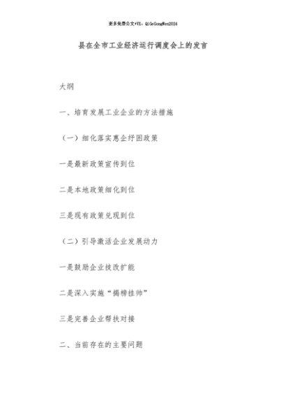 / 【七哥公文】2024年:县在全市工业经济运行调度会上的发言+更多免费公文+VX:QiGeGongWen2024