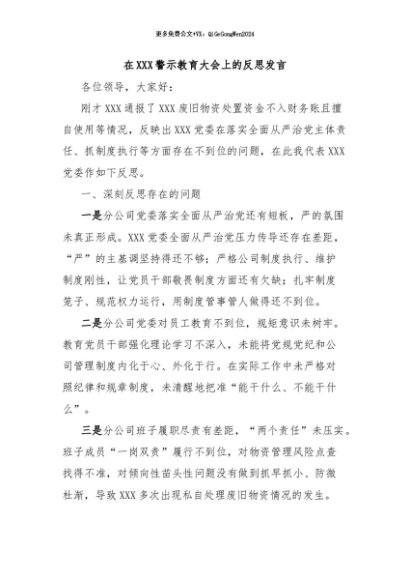 / 【七哥公文】2024年:在XXX警示教育大会上的反思发言+更多免费公文+VX:QiGeGongWen2024