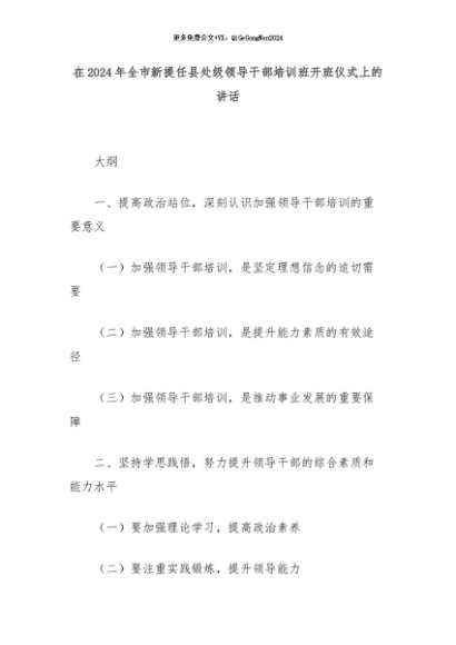 【七哥公文】2024年:在2024年全市新提任县处级领导干部培训班开班仪式上的讲话+更多免费公文+VX:QiGeGongWen2024