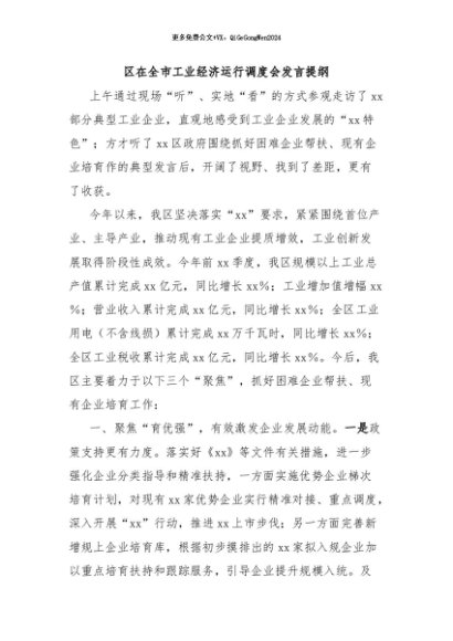 / 【七哥公文】2024年:区在全市工业经济运行调度会发言提纲+更多免费公文+VX:QiGeGongWen2024