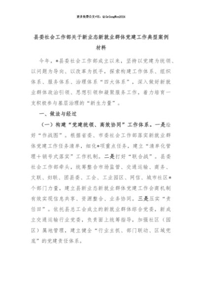 【七哥公文】2024年:县委社会工作部关于新业态新就业群体党建工作典型案例材料+更多免费公文+VX:QiGeGongWen2024
