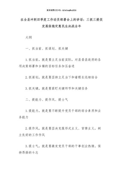 【七哥公文】2024年:在全县冲刺四季度工作动员部署会上的讲话:三抓三提促发展保稳定惠民生决战全年+更多免费公文+VX:QiGeGongWen2024