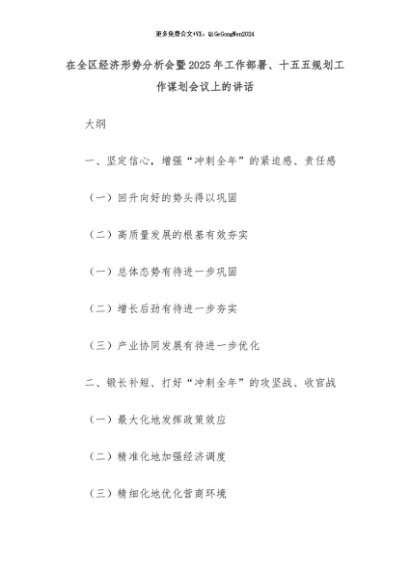 【七哥公文】2024年:在全区经济形势分析会暨2025年工作部署、十五五规划工作谋划会议上的讲话+更多免费公文+VX:QiGeGongWen2024