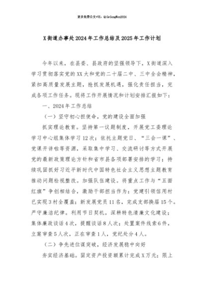 【七哥公文】2024年:X街道办事处2024年工作总结及2025年工作计划+更多免费公文+VX:QiGeGongWen2024