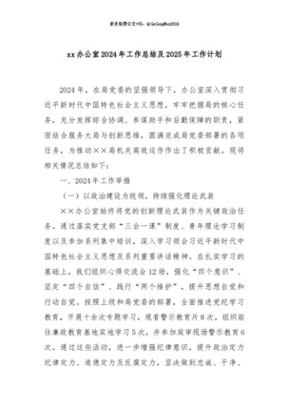 / 【七哥公文】2024年:xx办公室2024年工作总结及2025年工作计划+更多免费公文+VX:QiGeGongWen2024