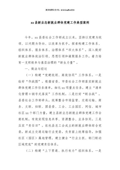 / 【七哥公文】2024年:xx县新业态新就业群体党建工作典型案例+更多免费公文+VX:QiGeGongWen2024