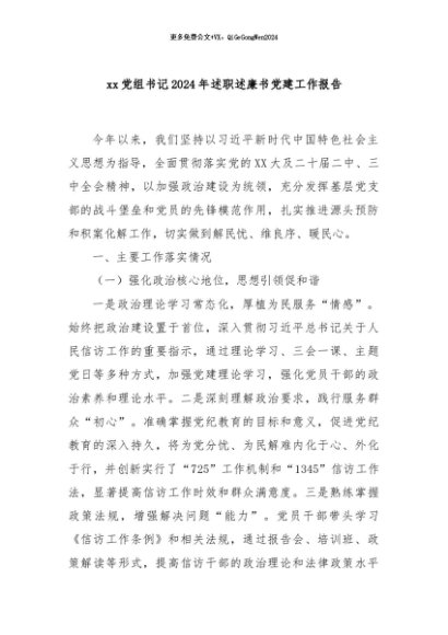 / 【七哥公文】2024年:xx党组书记2024年述职述廉书党建工作报告+更多免费公文+VX:QiGeGongWen2024