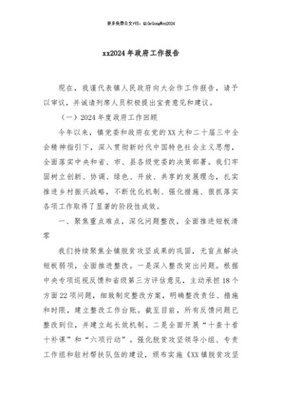 / 【七哥公文】2024年:xx2024年政府工作报告+更多免费公文+VX:QiGeGongWen2024