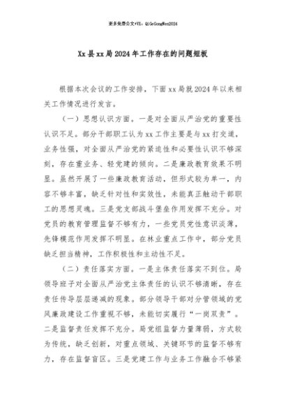 / 【七哥公文】2024年:Xx县xx局2024年工作存在的问题短板+更多免费公文+VX:QiGeGongWen2024