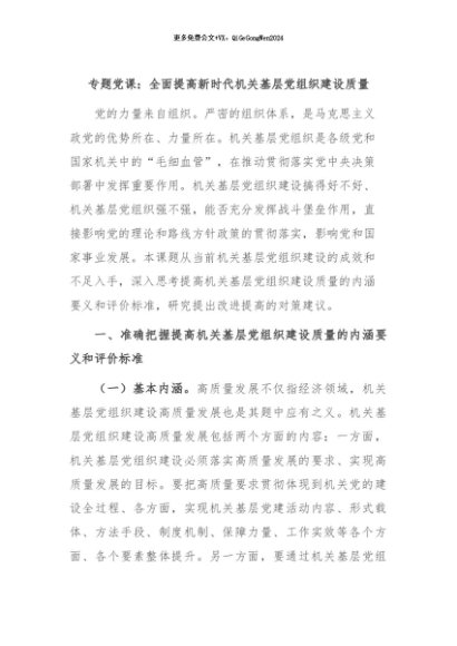 / 【七哥公文】2024年:专题党课:全面提高新时代机关基层党组织建设质量+更多免费公文+VX:QiGeGongWen2024
