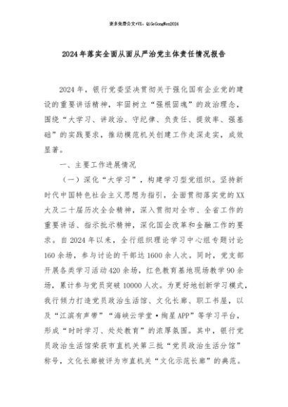 / 【七哥公文】2024年:2024年落实全面从面从严治党主体责任情况报告+更多免费公文+VX:QiGeGongWen2024
