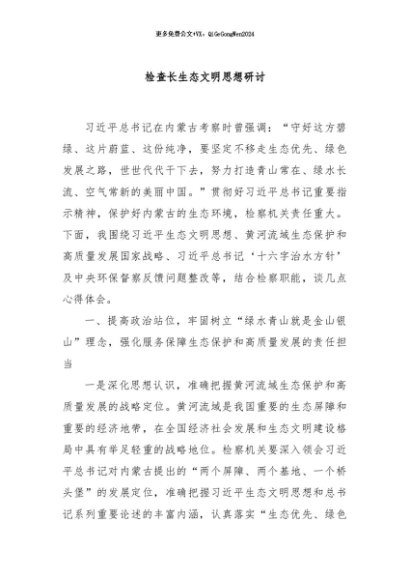 【七哥公文】2024年:检查长生态文明思想研讨+更多免费公文+VX:QiGeGongWen2024