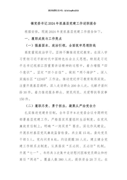 / 【七哥公文】2024年:镇党委书记2024年抓基层党建工作述职报告+更多免费公文+VX:QiGeGongWen2024