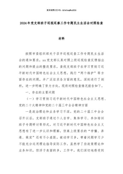 【七哥公文】2024年:2024年党支部班子巡视巡察工作专题民主生活会对照检查材料+更多免费公文+VX:QiGeGongWen2024