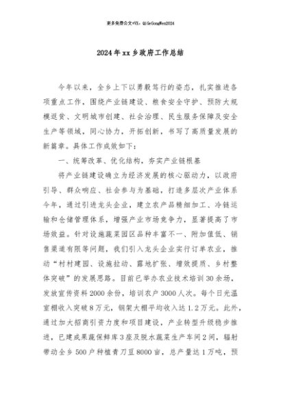 / 【七哥公文】2024年:2024年xx乡政府工作总结+更多免费公文+VX:QiGeGongWen2024