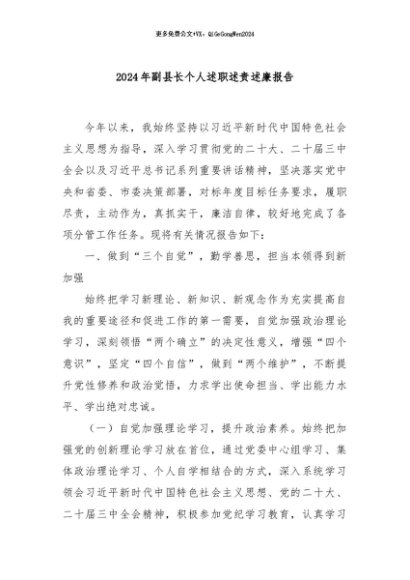 / 【七哥公文】2024年:2024年副县长个人述职述责述廉报告+更多免费公文+VX:QiGeGongWen2024