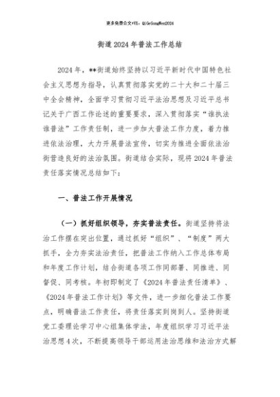 / 【七哥公文】2024年:街道2024年普法工作总结+更多免费公文+VX:QiGeGongWen2024