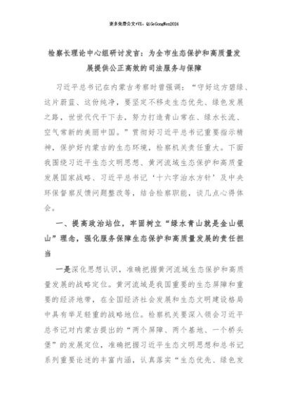 【七哥公文】2024年:检察长理论中心组研讨发言:为全市生态保护和高质量发展提供公正高效的司法服务与保障+更多免费公文+VX:QiGeGongWen2024