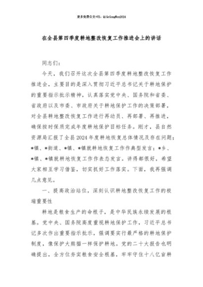 / 【七哥公文】2024年:在全县第四季度耕地整改恢复工作推进会上的讲话+更多免费公文+VX:QiGeGongWen2024
