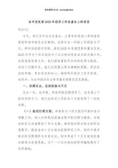 / 【七哥公文】2024年:在市发改委2025年经济工作务虚会上的讲话+更多免费公文+VX:QiGeGongWen2024