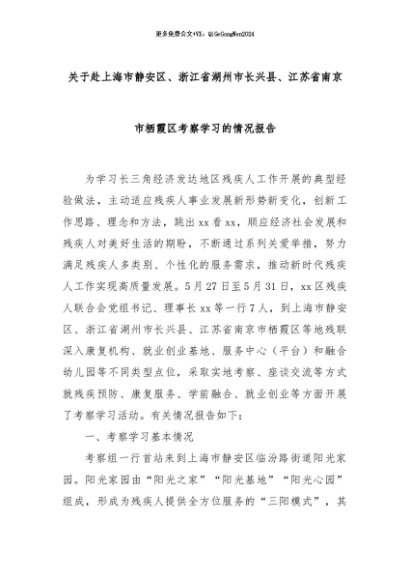 【七哥公文】2024年:关于赴上海市静安区、浙江省湖州市长兴县、江苏省南京市栖霞区考察学习的情况报告+更多免费公文+VX:QiGeGongWen2024