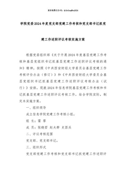 【七哥公文】2024年:学院党委2024年度党支部党建工作考核和党支部书记抓党建工作述职评议考核实施方案+更多免费公文+VX:QiGeGongWen2024