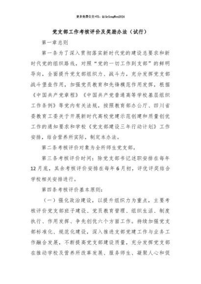 / 【七哥公文】2024年:党支部工作考核评价及奖励办法+更多免费公文+VX:QiGeGongWen2024