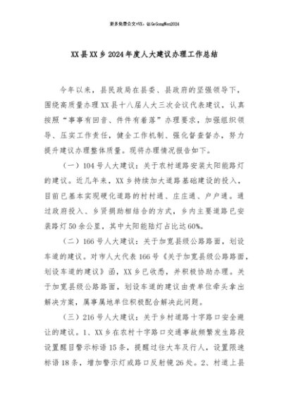 / 【七哥公文】2024年:XX县XX乡2024年度人大建议办理工作总结+更多免费公文+VX:QiGeGongWen2024