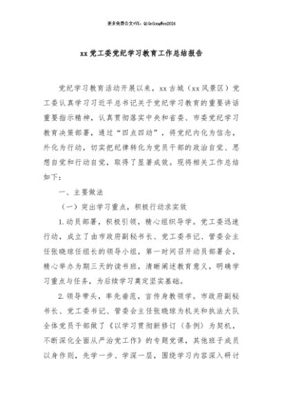 / 【七哥公文】2024年:xx党工委党纪学习教育工作总结报告+更多免费公文+VX:QiGeGongWen2024