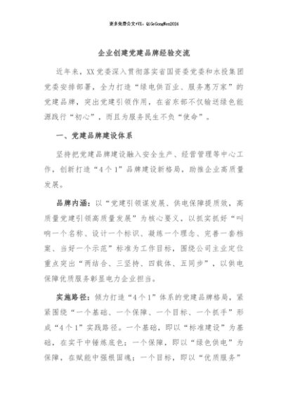 / 【七哥公文】2024年:企业创建党建品牌经验交流+更多免费公文+VX:QiGeGongWen2024