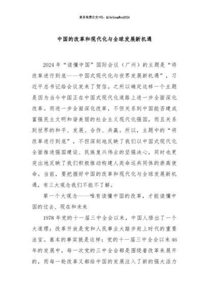 / 【七哥公文】2024年:中国的改革和现代化与全球发展新机遇+更多免费公文+VX:QiGeGongWen2024