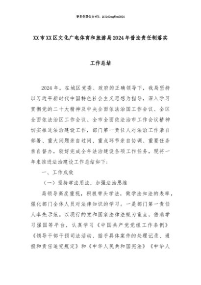 【七哥公文】2024年:XX市XX区文化广电体育和旅游局2024年普法责任制落实工作总结+更多免费公文+VX:QiGeGongWen2024